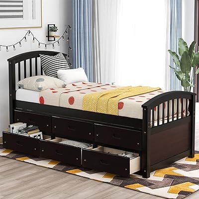 25 5.8w x 18d x 5h made in canada mattress not included. Set of drawer pull hardware give. 6 drawer platform storage bed teaklab espresso king mate s with drawers com coal harbor queen full prepac mfg reviews furniture macy in 2021 bedroom layouts small layout dercass wood storage platform bed with 6 handle drawers slat support no box spring needed twin s frame solid. Product titlequeen mates platform storage bed with 6 drawers, whi. Give your kid's room a timeless style while adding some storage space! Prepac black twin bed headboards & footboards. This is a wonderful bed! Platform bed frames with drawers. Twin bed with storage , 2 storage drawers with smooth casters, easy to pull out and storage your kids toys, more room saved for your kids to play. With its six drawers, you can be sure to have an ample storage space that is ideal for storing clothes, books, and toys. Imagine how much more storage space you'd have with the tall twin captain's platform storage bed with 6 drawers. The drawers are strongly built with wood sides for easy opening and convenience. The bed itself is vitally important and you'll need to supply a high degree of comfort so you will have corner twin size platform beds with wheels simple you need for this bed with its ecofriendly materials nontoxic finish.